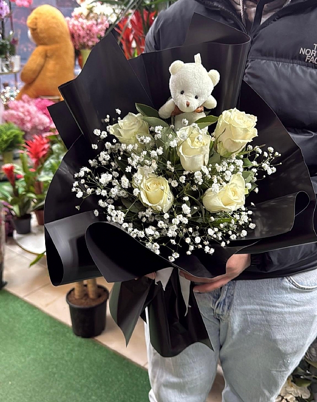 Butik Çantada 3 Gül Papatya Ayıcık