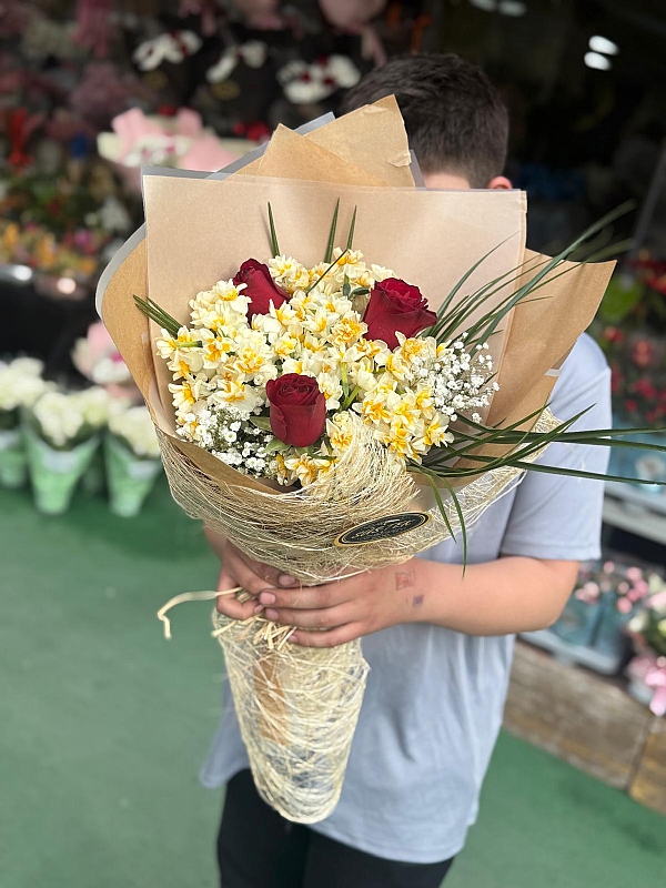 3 Gül Nergis Buketi