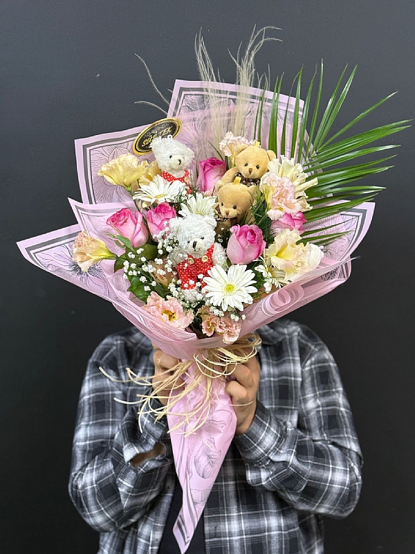 Soft Tonlarda 4 Adet Ayıcıklı Marjinal Buket