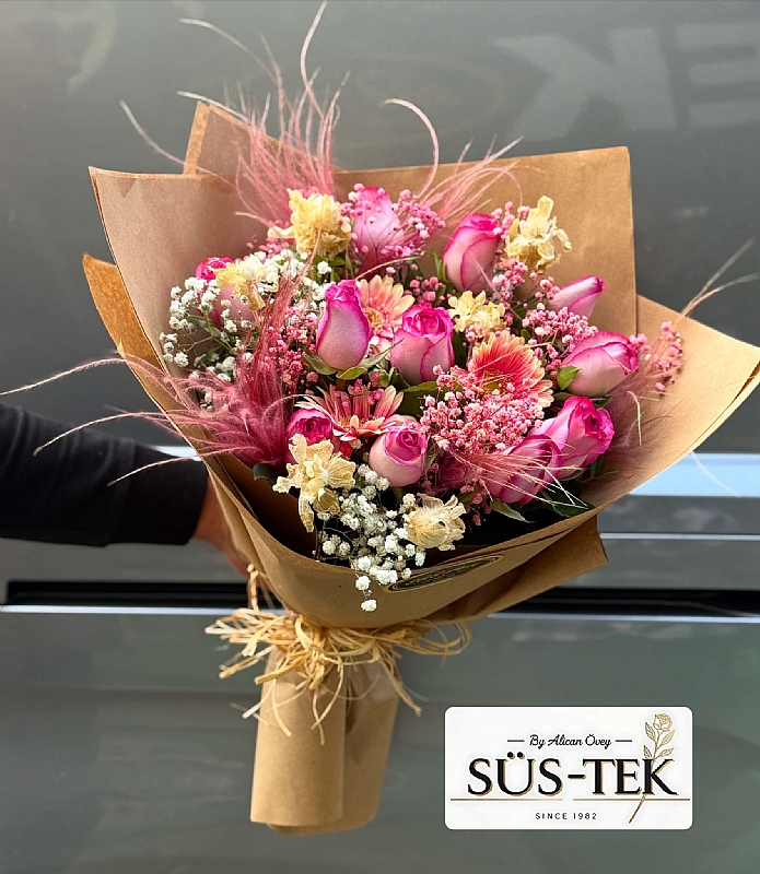 11 Pembe Gül Butik Tasarım Ürünler Buketi